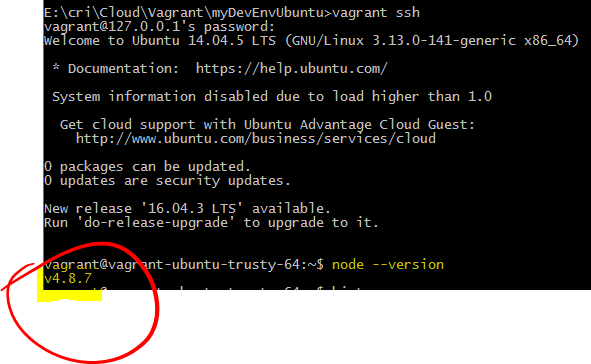 Enter whatever script or commands you want to run as part of your VM initialisation bootstrap process. In this case, let’s assume that for this Vagrant project, I need to install NodeJS 4.8.7 in order to test a specific application.