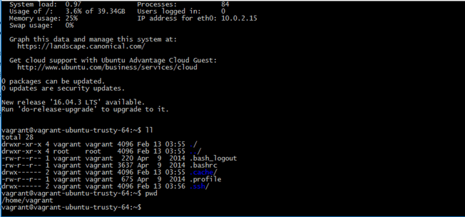 If you are an existing VirtualBox user, you will notice that this is just a normal VM running on VB. Vagrant simply makes it easier to use.