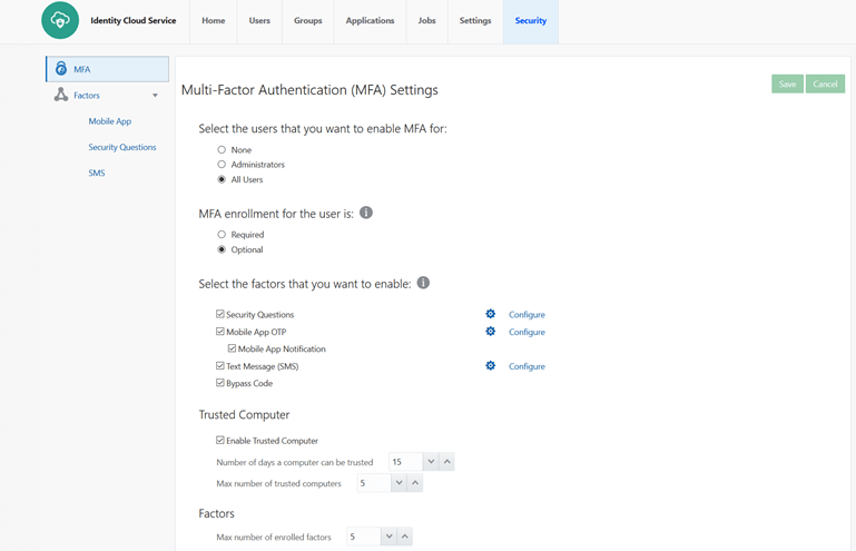 We can also enable trusted computers which means that once we have successfully authenticated with MFA, Oracle Identity Cloud Service will trust that computer for the specified number of days. During this time, the user won’t be prompted for MFA again.