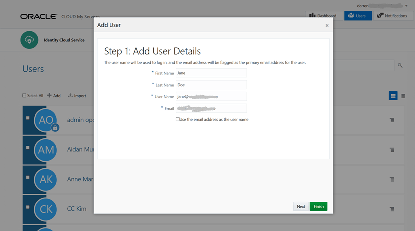 Ok, that hasn’t really shown MFA in action. So let’s add a basic user to IDCS and try MFA on an application.