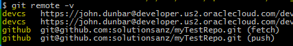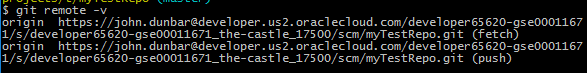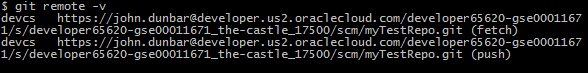 e.g. git remote devcs https://carlos@developer.us2.oraclecloud.com/the-castle/scm/myTestRepo.Git