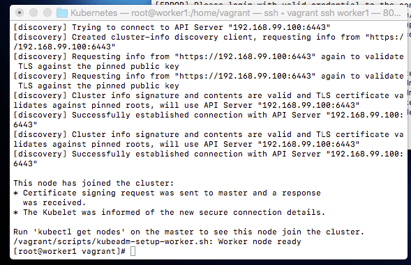Setting up your Worker node 1 node should succeed with a message like the following: