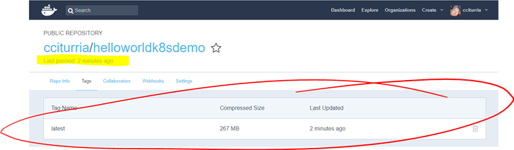docker tag c26c58862548 cciturria/helloworldk8sdemo