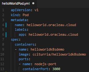 • Inside there is “helloWorldPod.yml“, the pod definition for our Hello World App demo.