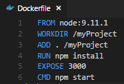 • Line 2: Setting the Working directory within the new Docker node image (creating and changing current directory)