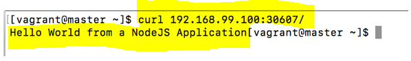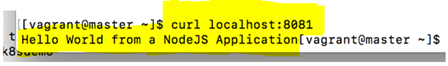 • The provided Vagrant box is configured by default with NAT and Port-Forwarding on port 3000:3000, so you can open a browser on your host machine and go to localhost:3000 – You should be able to see the “Hello World from a NodeJS Application” message.