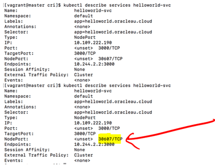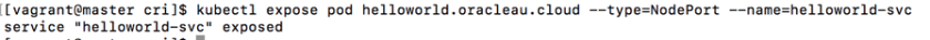 kubectl expose pod helloworld.oracleau.cloud –type=NodePort –name=helloworld-svc –port 8081