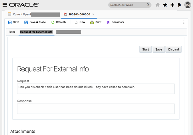 Now as a Contact Center user, let’s kick-off a Request for External Information.