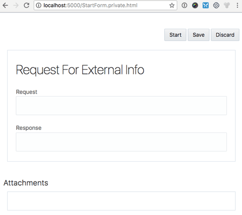 We will first need to embed the Start Form to kick-off the process. Here’s what it looks like inside: