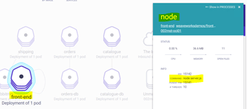 - Quickly go back to Weave Scope Dashboard and notice how the rest of the microservice interacted with each other to complete the Order.