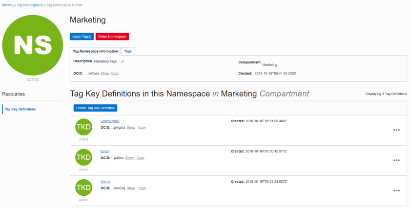 Tags are a great way to attach information about resources (e.g. ADW Instances). In my example I want to allow administrators to tag resources with Event Names, Campaign IDs and Owners.