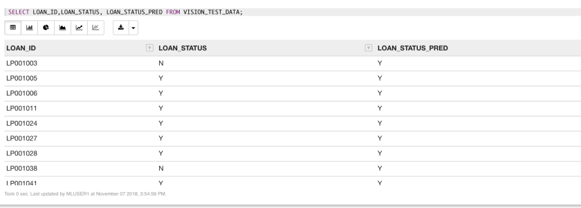 SELECT LOAN_ID,LOAN_STATUS, LOAN_STATUS_PRED FROM VISION_TEST_DATA;