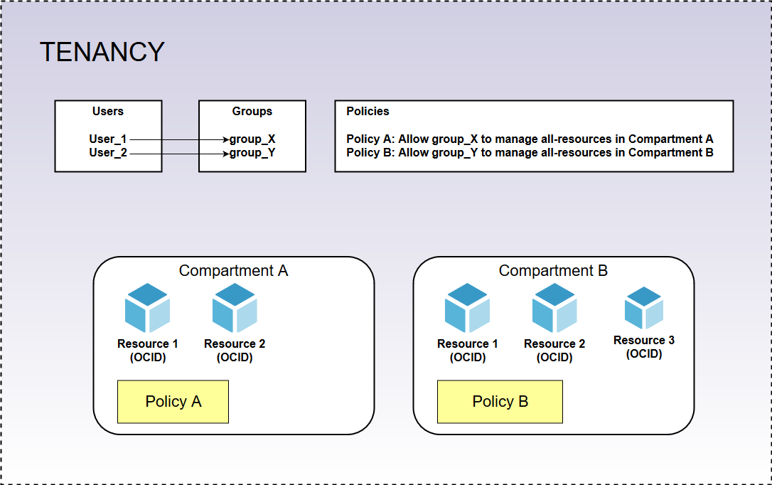 Figure 2: Users, Groups, Resources, Compartments and Tenancy