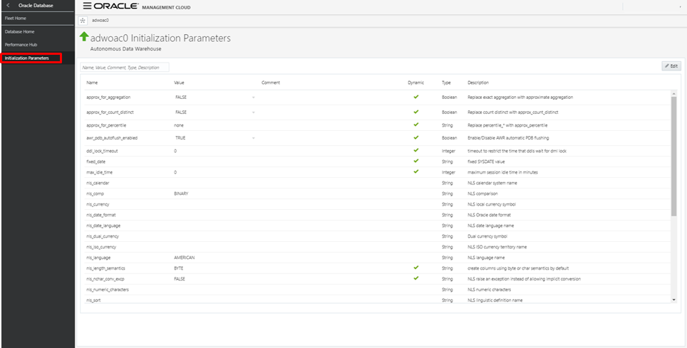 Lastly, the supported Initialization Parameters can be updated through the Database Fleet Management page.