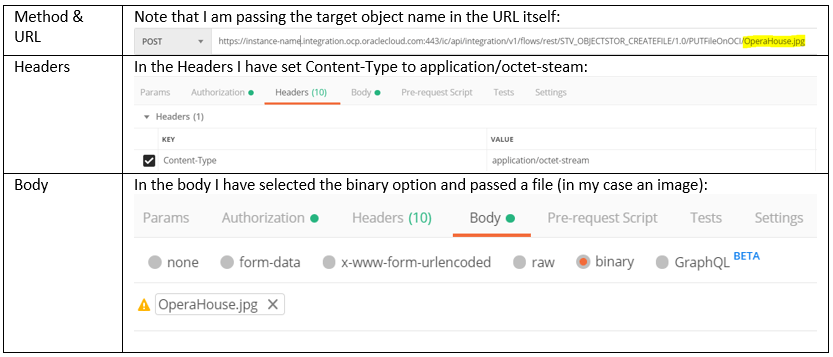 The OCI object storage API uses several template parameters and here I have mapped them as follows:
