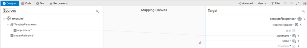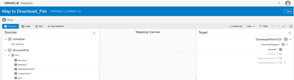 Once the file has been successfully uploaded to OCI Object Storage, I use the FTP Adapter to delete it from the archive location on the FTP server. In this mapper I simply map the current file name to the delete operation.