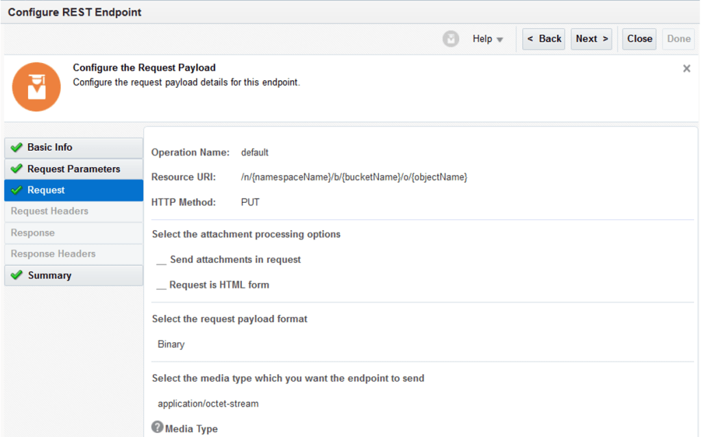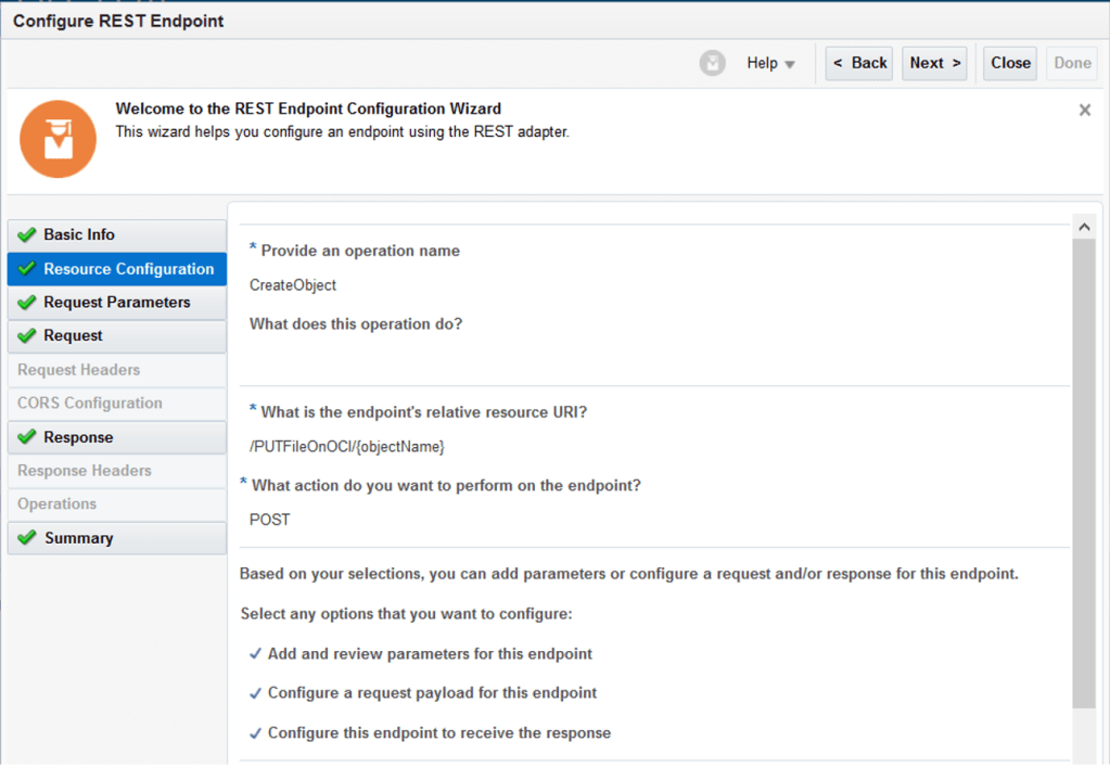 I have defined my endpoint URI with a template parameter. This parameter will store the name of the object that will be uploaded in OCI.