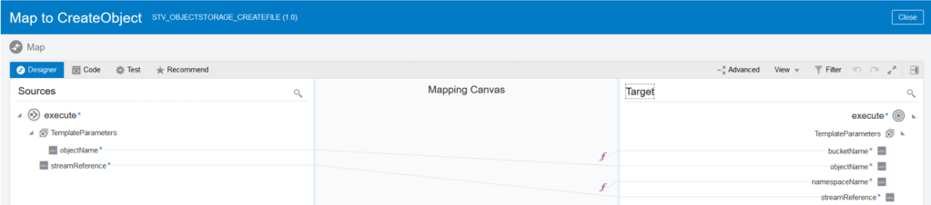 I then dragged the OBJECT STORAGE REST connection on to the canvas and this auto generated the mapper component.