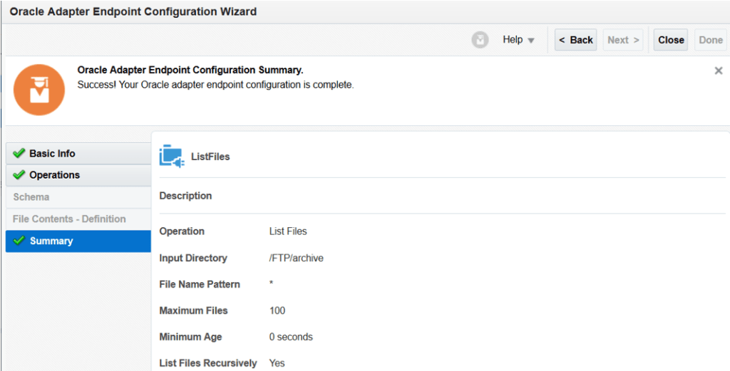 In this integration, I am listing all files that reside in a particular folder within an FTP server. The integration is a scheduled based orchestration that will run periodically checking for files to push to Object Storage.
