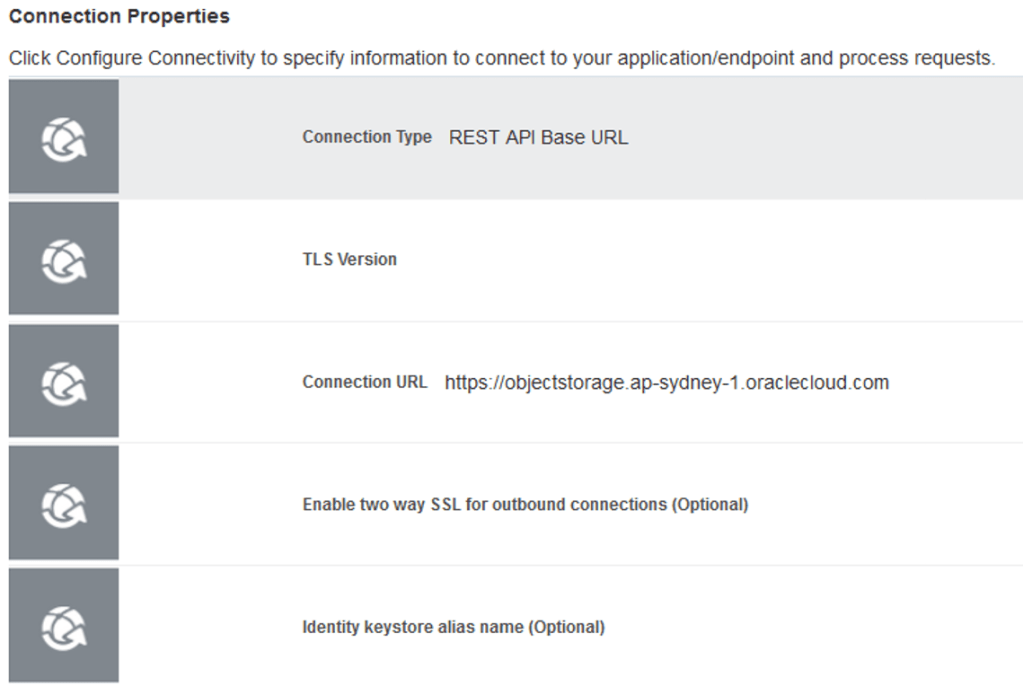 Armed with the above API reference documentation and OCI setup, we can now create our connection in Oracle Integration Cloud.