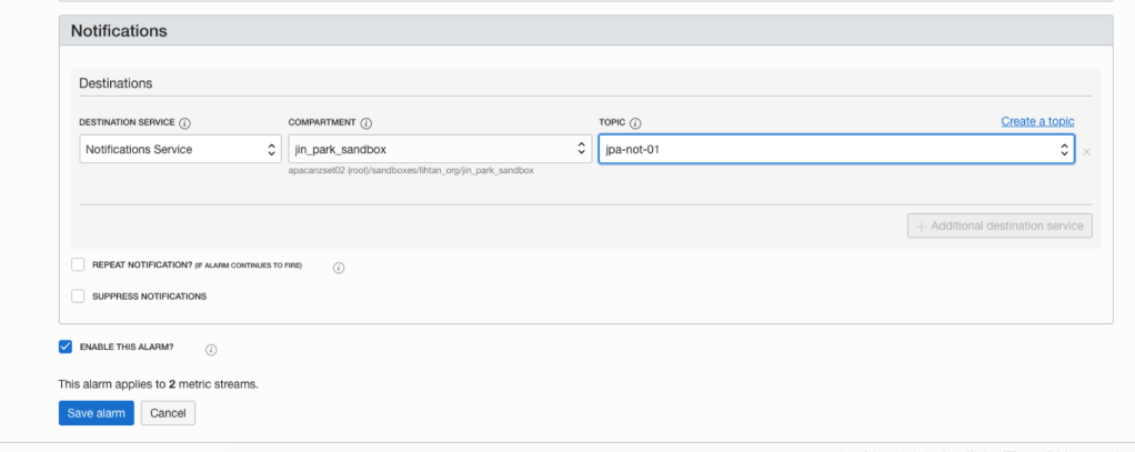 - OCI Notification Service will send warning email to me. So I just set up Topic and then configured Subscription by my email, done.