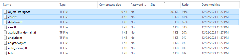 I’ve downloaded the Terraform configuration which comes in a zip file. This is a collection of the modules in HCL format with different files for the different resources. There’s also a file for variables.