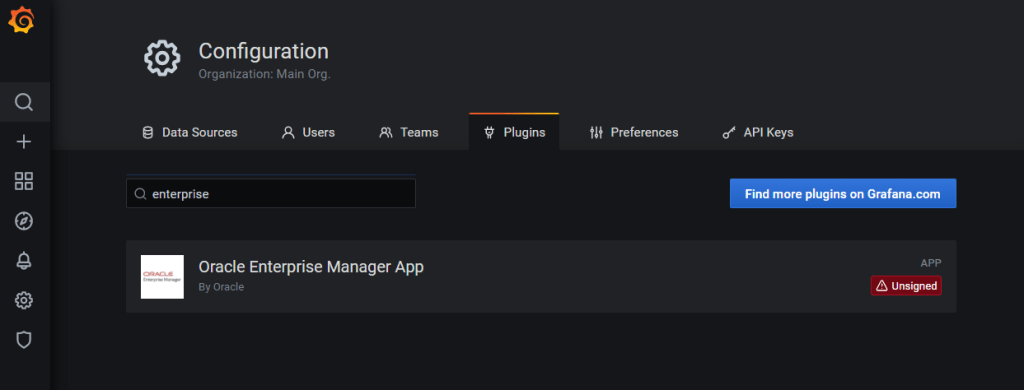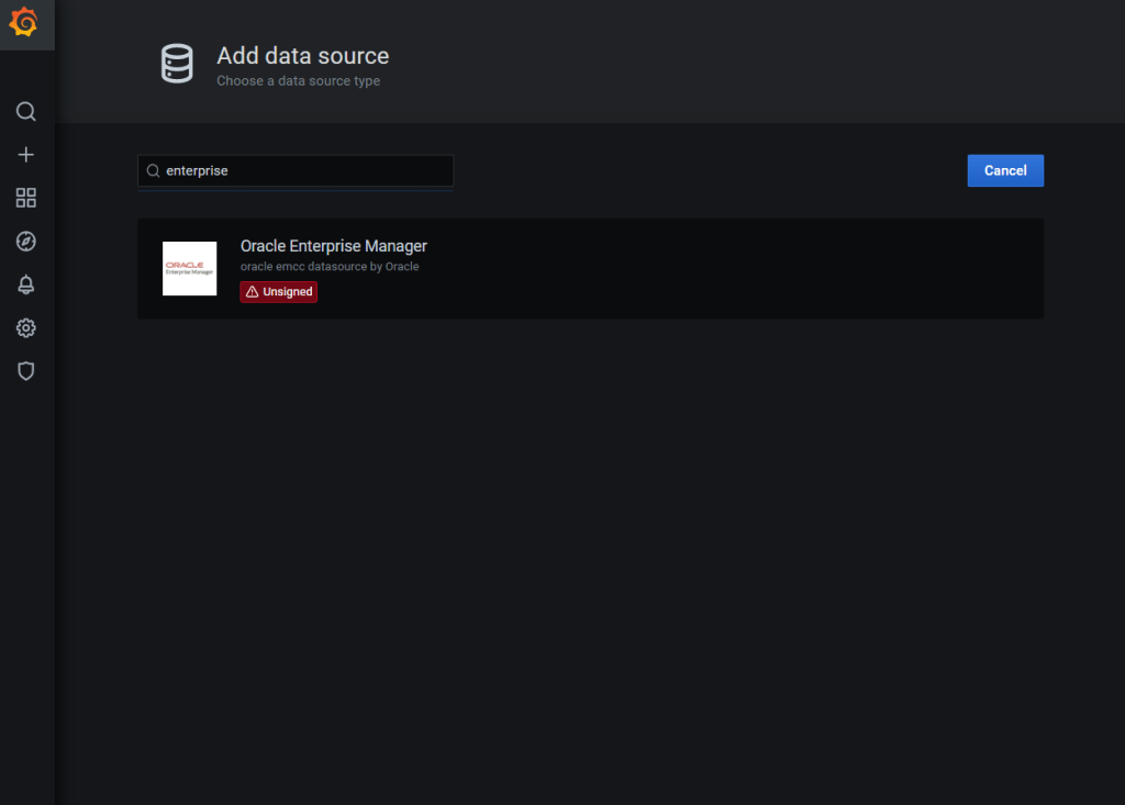 installing oracle-emcc-app @ from: /tmp/oracle-emcc-app-2.0.0.zip into: /var/lib/grafana/plugins ✔ Installed oracle-emcc-app successfully Restart grafana after installing plugins . <service grafana-server restart>