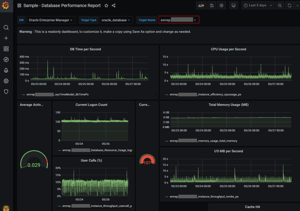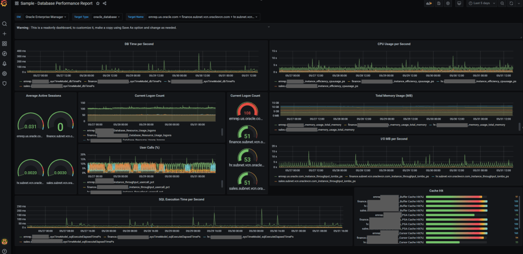 Oracle Enterprise Manager (EM) repository has a wealth of operational data (for host, database, middleware, apps and engineered systems) that it collects including configuration and metrics. By using Grafana, you can tap into that data to get Rich Analytics and Visualisations for Reporting.