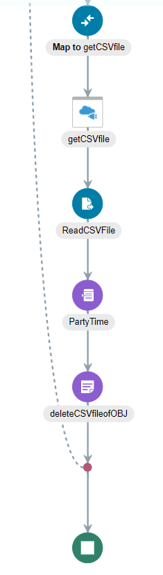 10. Finally the deleteCSVfileofObjectStorage step is a note, to remind you to cleanup the converted CSV file should you want to. You can see an example of implementing an Object Storage delete operation in my blog here.
