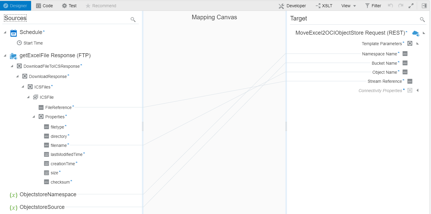 - The Excel file(s) will then be pushed to OCI Object Storage by OIC. Refer to my previous blog if you need a refresher on how to write files to Object Storage with Oracle Integration. I am using Object Storage here as a transient point for these files because I want to provide an easy and secure way for my file conversion function (which is hosted in OCI) to access these Excel files. It is also possible to achieve this without Object Storage … as the function code can be altered to simply get the file directly from OIC’s file server via FTP rather then retrieve it from Object Storage.