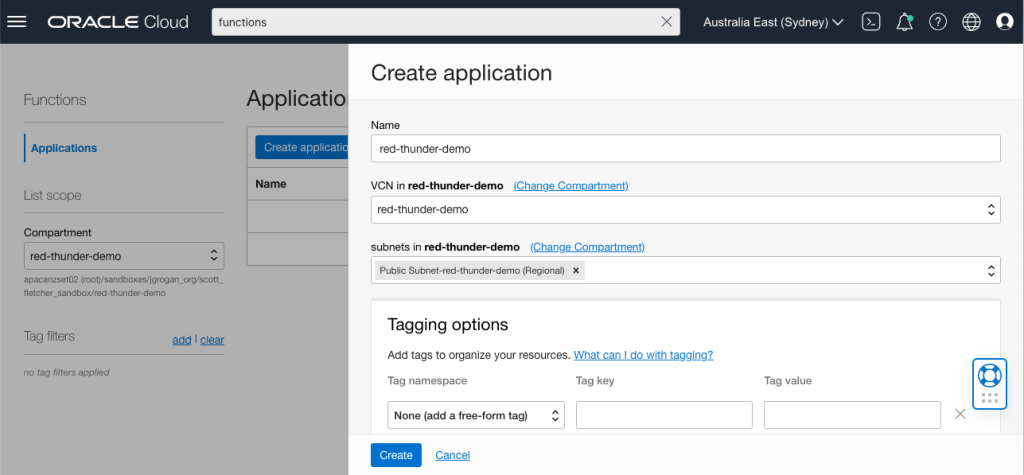 $ fn update context api-url https://functions.ap-sydney-1.oraclecloud.com