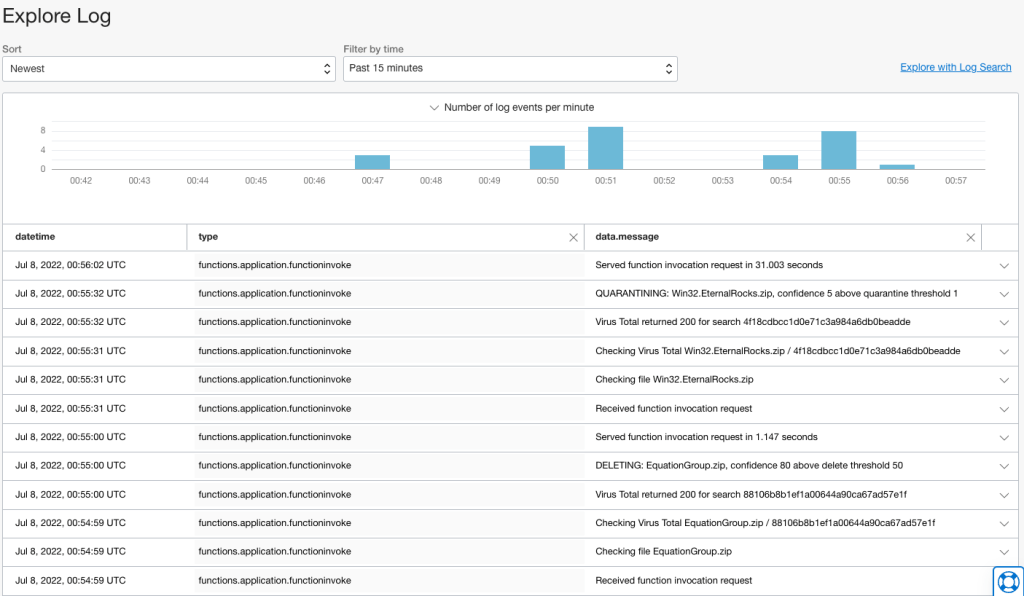 At this point, we’ve confirmed the scan-upload function works as expected. Great! However looking at these logs isn’t very exciting so I’m going to show you how you can visualise these results with Logging Analytics.