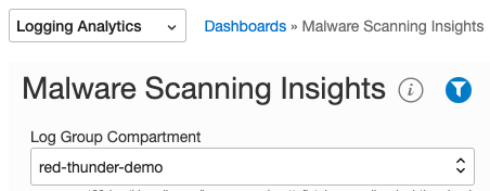 You should then be able to view your dashboard. If you don’t see any data, make sure your scan-results bucket has logs in it, and you have selected the correct compartment from the drop down list: