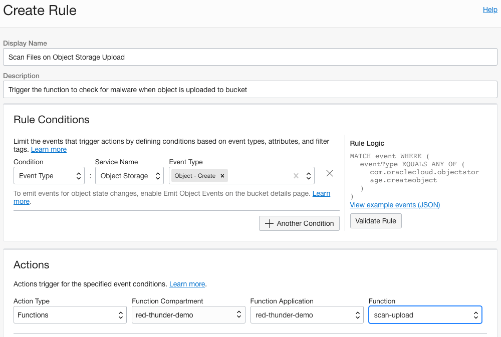 Successfully created function: scan-upload with syd.ocir.io/abcd/red-thunder-demo/scan-upload:1.0.1