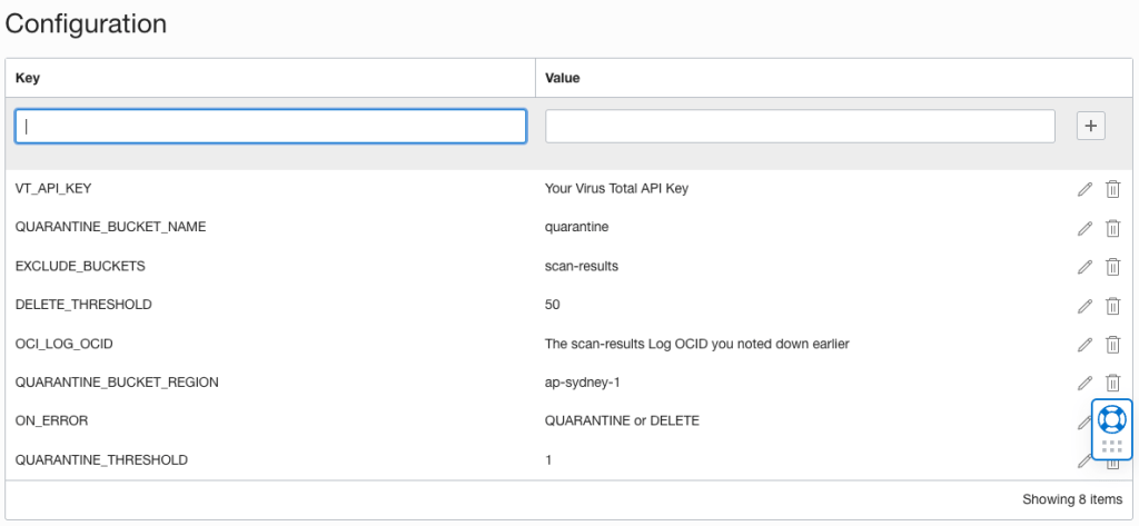 - QUARANTINE_BUCKET_REGION: This is the region where the bucket called “quarantine” is located. I’ve entered ap-sydney-1 as this is where I created the bucket.