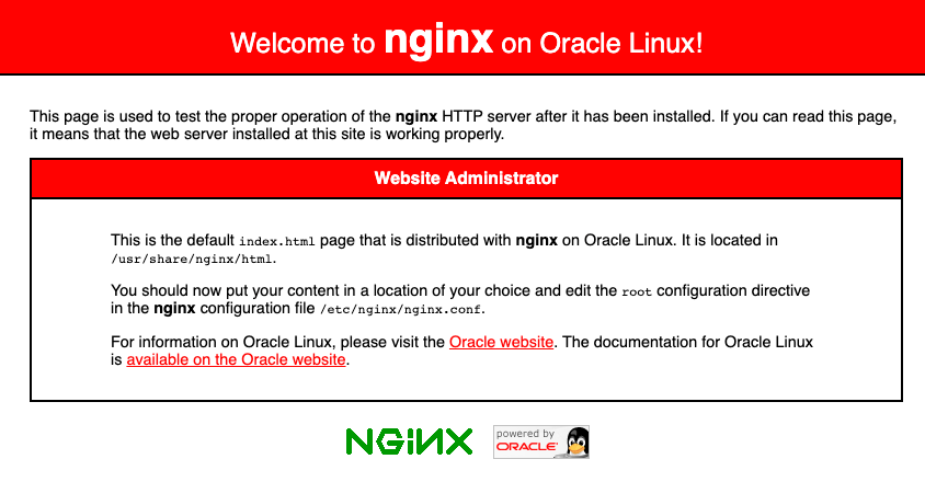 If you’re trying out this demo and don’t have a web server to forward traffic to, you can follow these instructions and create another Oracle Linux 8 virtual machine running Nginx. Note you only need to follow the instructions in the “Install and enable Nginx” section.