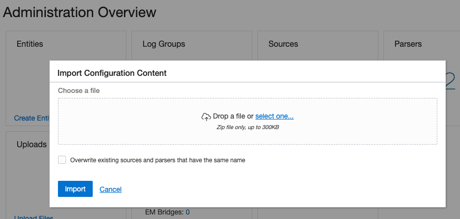 Click “Import Configuration Content”, select the ZIP file and click Import: