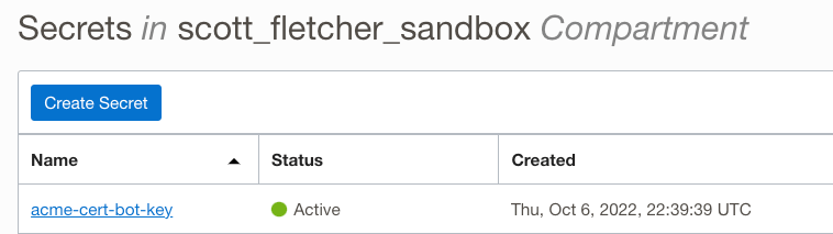 Allow dynamic-group acme-certbot-dg to manage secrets in compartment scott_fletcher_sandbox