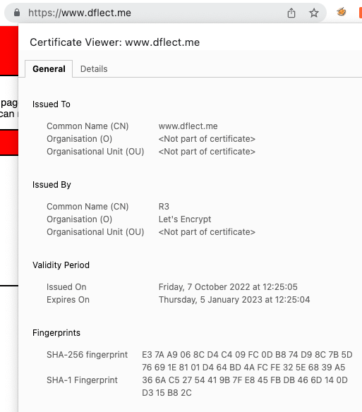 I can also view the certificate that was issued by Let’s Encrypt:
