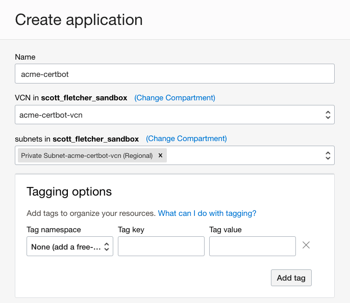 $ fn create context acme-certbot --provider oracle