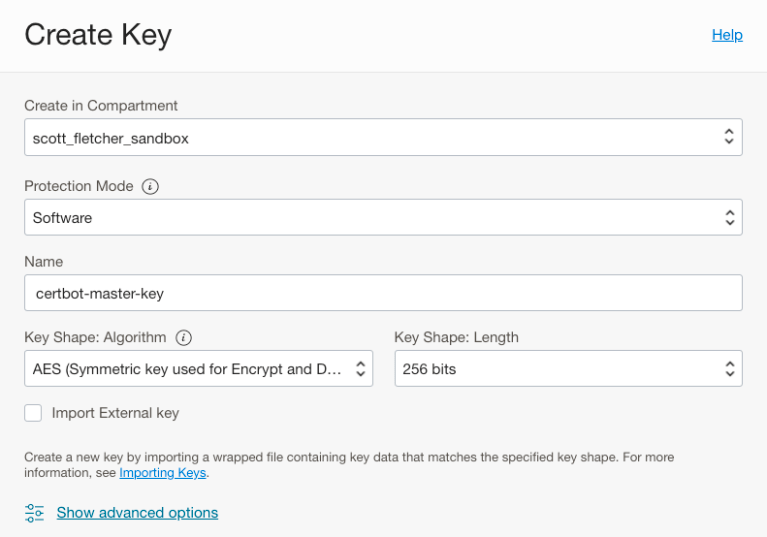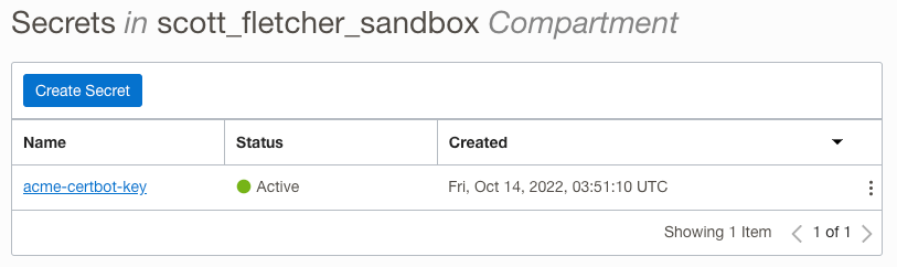 You will also need a Master Encryption Key in each OCI vault that you want to use. For example if you need to keep certificates and keys in the Tokyo region for workloads based in Japan, and certificates and keys in Sydney for Australian workloads then you will need two vaults each containing a Master Encryption Key. If you don’t have such a requirement, then you only need one vault and one Master Encryption Key.