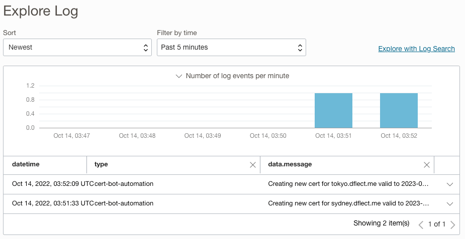 If we take a look at our cert-bot-activity log we can see the certificate was created: