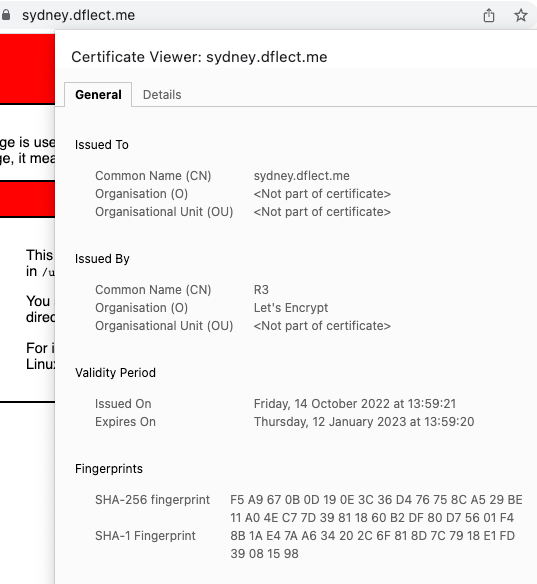 I can also view the certificate that was issued by Let’s Encrypt: