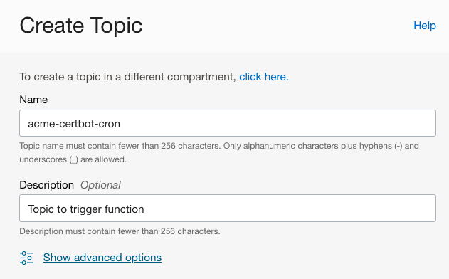 Successfully created function: worker with syd.ocir.io/abcd/acme-certbot/worker:1.0.1