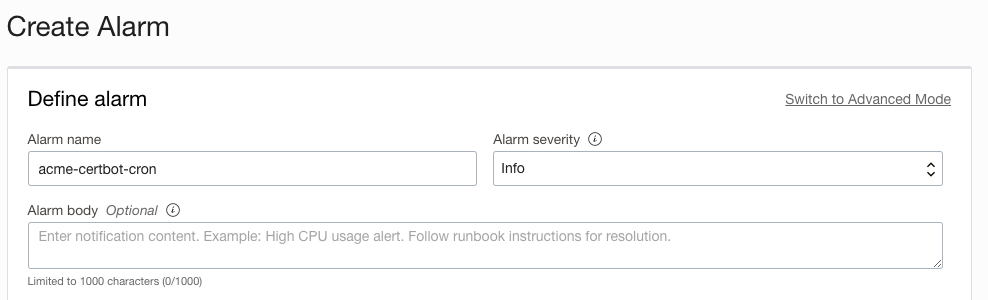 Now we need to create an alarm: