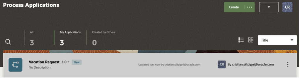 Now if we need to build the “Vacation Request” business process we need to create new resources as below explained after having created the new application. In our case “Vacation Request”