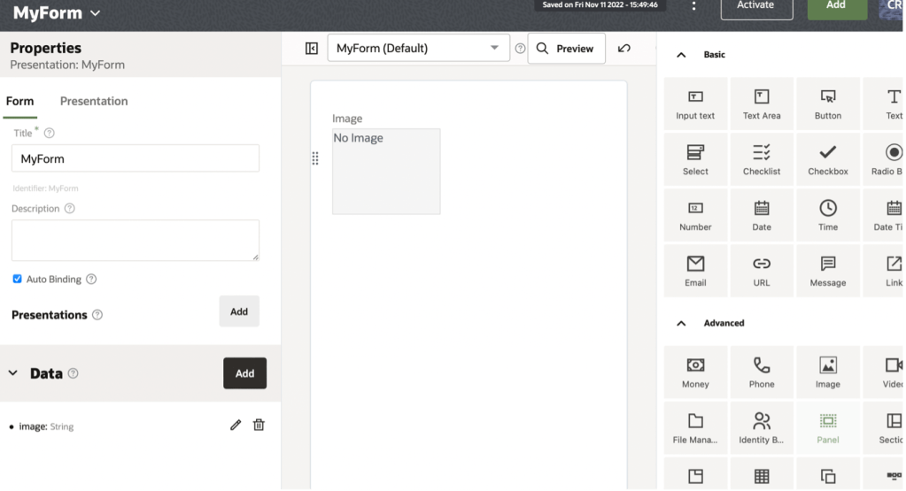We can include images, text fields, dates, … all we need to build something meaningful to our scope using all the components which usually are available in HTML applications