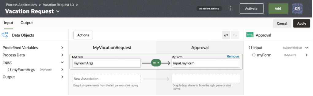 Reproduce what below included into your mapping and select apply to save your configuration. This one for each activity of the process