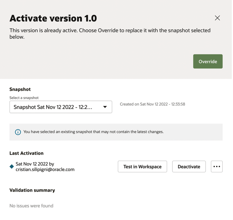 Our business process is now published and ready to be tested. Click on “Test in Workspace” to run your first instance