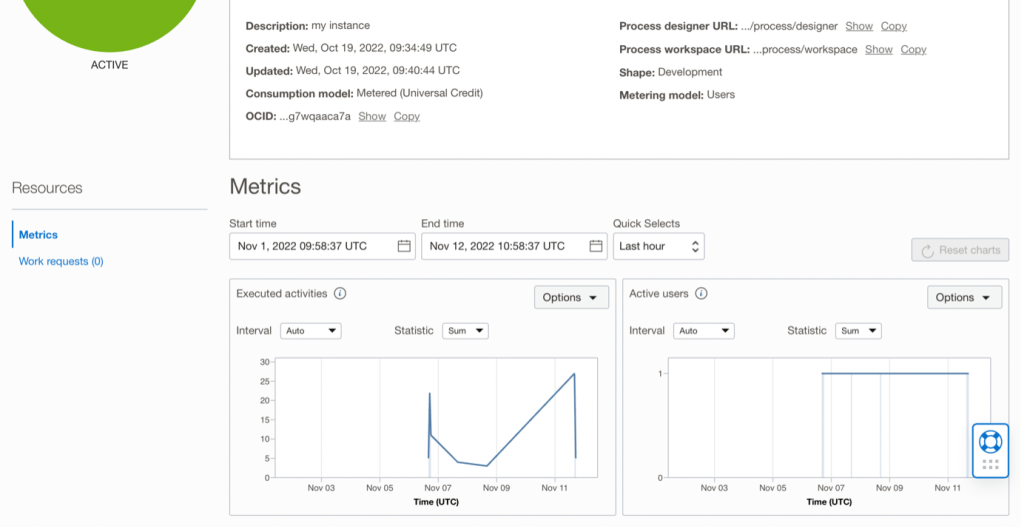 From here we can get also interesting and helpful info about the metrics of our service and other details about billing model, shape and URLS of the web applications used to design and run our implementations